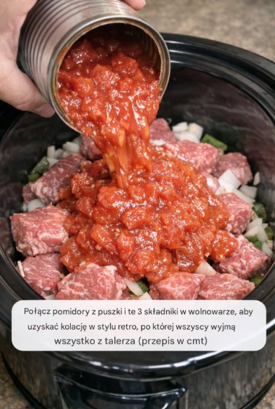 Jest coś głęboko satysfakcjonującego w delikatnej wołowinie duszonej w bogatym, pikantnym sosie pomidorowym — miękkiej po nakłuciu widelcem, wytrawnej i przesiąkniętej tradycyjną, wykwintną nutą. Ten stek szwajcarski z wolnowaru to klasyczny posiłek w stylu barowym, składający się tylko z 4 podstawowych składników , jednego garnka i bez stresu . Bez przyrumienienia, bez dodawania potraw, bez paniki w ostatniej chwili. Zainspirowane kolacjami w klubach towarzyskich i niedzielnymi obiadami rodzinnymi na Środkowym Zachodzie, danie to zamienia skromny stek w treściwe, rozgrzewające danie główne , które doskonale komponuje się z puree ziemniaczanym, makaronem jajecznym lub chrupiącym chlebem. A co najlepsze? ✅ Tylko 4 składniki (plus sól i pieprz!) ✅ 10 minut pracy ✅ Jeden wolnowar = minimum sprzątania ✅ Naturalnie bezglutenowe, można dostosować do własnych potrzeb ✅ Resztki smakują jeszcze lepiej! 🌟 Dlaczego pokochasz ten przepis Przyjazne dla budżetu (poniżej 10 USD w sumie!) Nadaje się do zamrażania i nadaje się do użytku przez dzieci Wypełnia Twój dom zapachem „babcinej kuchni” Wykorzystuje podstawowe produkty spiżarni — nie wymaga specjalnych zakupów Idealne na wieczory w tygodniu, spotkania przy wspólnym stole lub wieczory, w których „potrzebuję łatwego pocieszenia” 💬 „Przygotowuję to danie od dziesięcioleci — to najlepszy sposób na to, żeby nie mieć ochoty gotować, a mimo to nadal jest wyjątkowe”. 🛒 Składniki, których będziesz potrzebować (proste i pożywne!) Magia 4 składników: