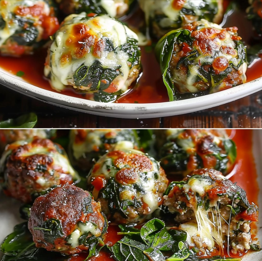 Pulpety szpinakowo-czosnkowe faszerowane mozzarellą